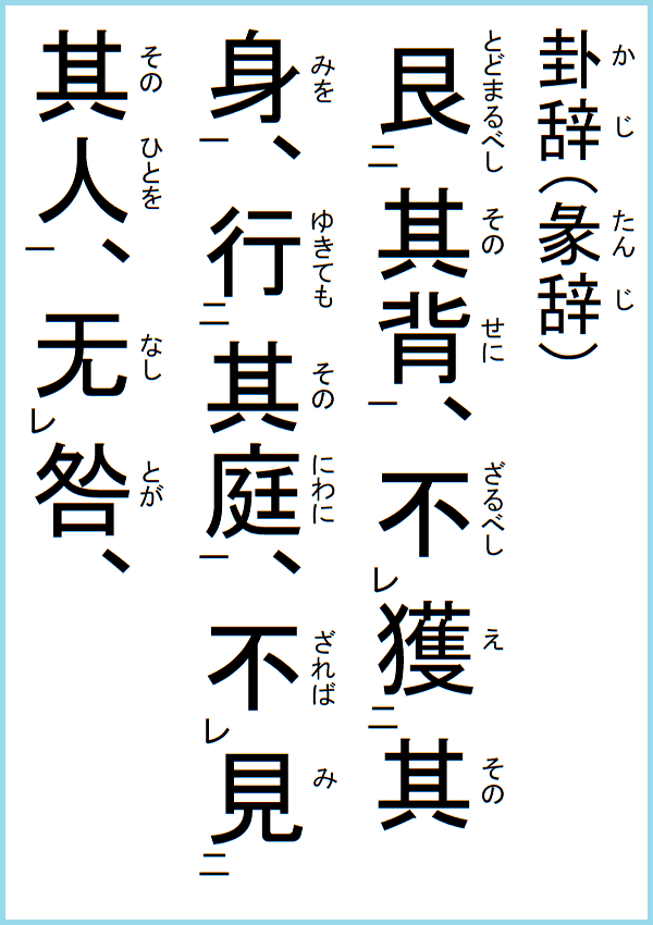 象に曰く、其の限に艮まるとは、獅ォこと心を桙ヤるがごときなり、