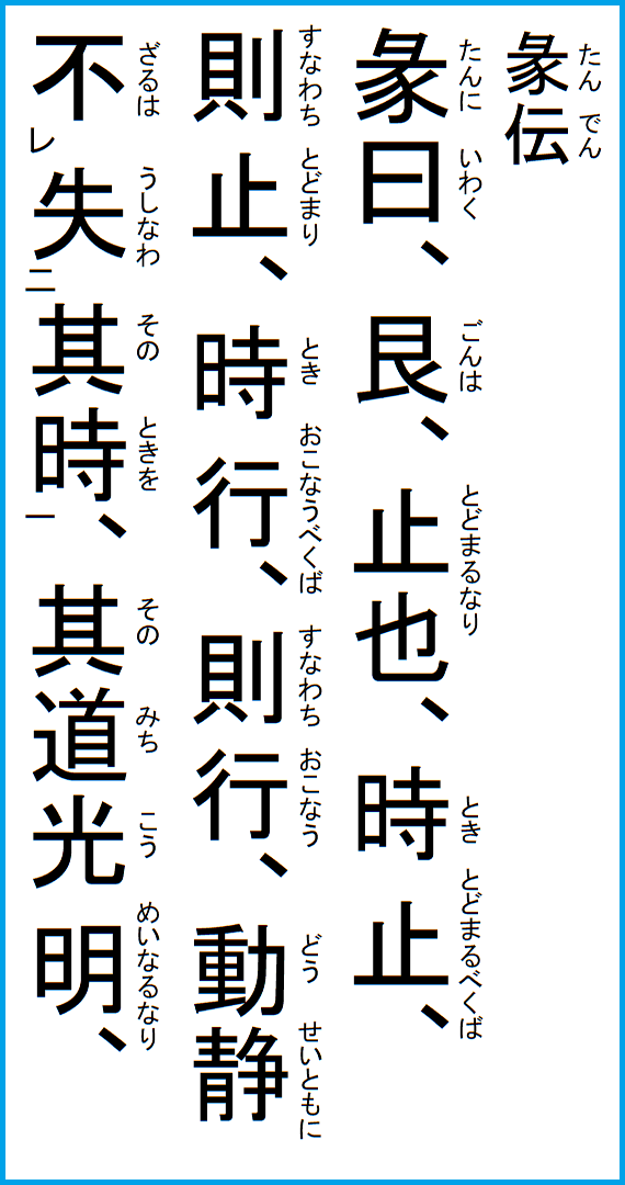 爻辞は、周の文王の子で、魯の国祖、周公旦の作と伝わり、また象辞とも言い、卦中の爻の意義を書いたものである。