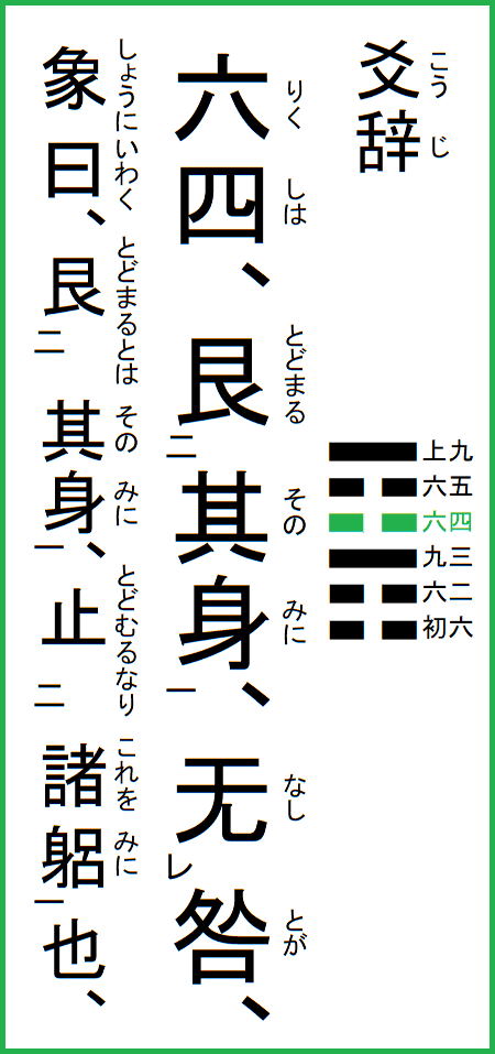 六四は、其の身に艮まる、咎无し、