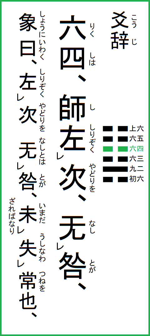 象に曰く、次を左く咎无しとは、未だ常を失わざればなり、