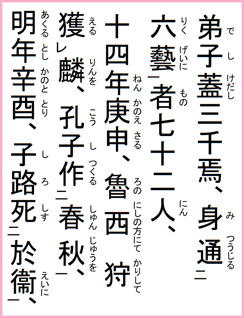 弟子蓋し三千、身六芸に通ずる者七十二人、