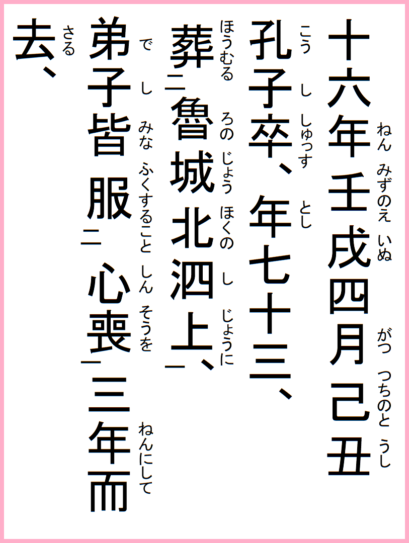十六年壬戌四月己丑、孔子卒っす、年七十三、