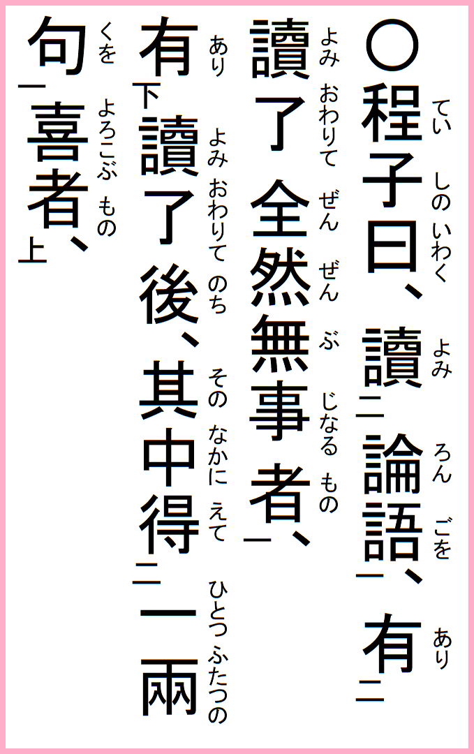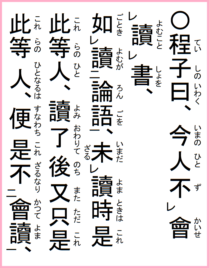 程子の曰く、論語を読み、読み了わりて全然無事なる者有り、