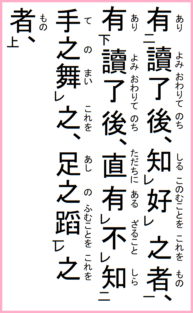 読み了わりて後、直に手の之を舞い、足の之を蹈むことを知らざること有る者有り、