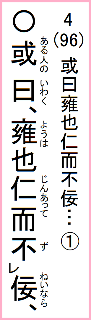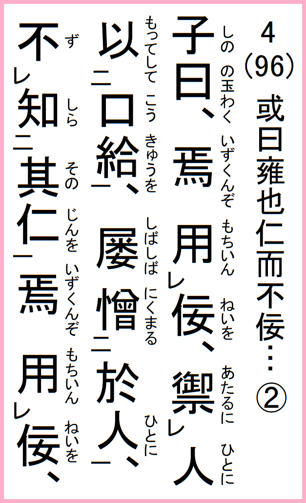 5-4 或人曰、雍は仁あって佞ならず、子曰、焉んぞ佞…