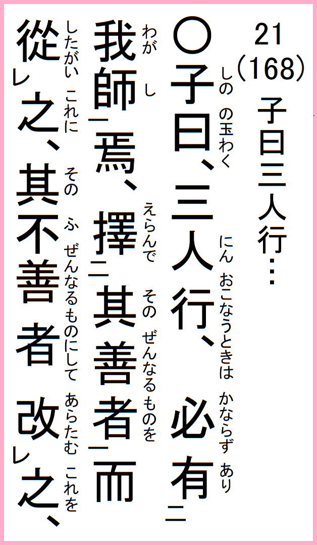 7-21 子曰、三人行うときは、必ず我が師有り、其の善…