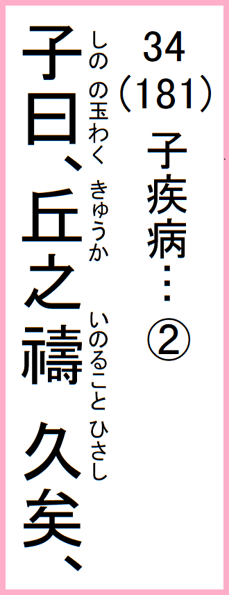 7-34 子の疾い病なり、子路、祷らんと請う、子曰、諸…