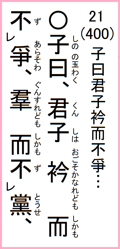 15-21 子曰、君子は矜かなれども而も争わず、群すれど…