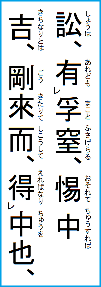ここに書いているのは、江戸後期の名著、眞勢中州の『周易釈故』より抜粋し、現代語で意訳したものです。 |