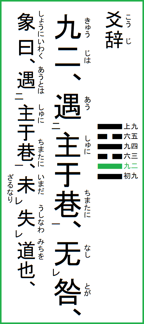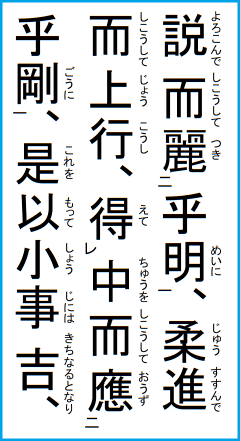| 究極の易経解説 メニュー 01.乾為天 02.坤為地 03.水雷屯 04.山水蒙 05.水天需 06.天水訟 07.地水師 08.水地比 09.風天小畜 10.天沢履 11.地天泰 12.天地否 13.天火同人 14.火天大有 15.地山謙 16.雷地予 17.沢雷随 18.山風蠱 19.地沢臨 20.風地観 21.火雷噬嗑 22.山火賁 23.山地剥 24.地雷復 25.天雷无妄 26.山天大畜 27.山雷頤 28.沢風大過 29.坎為水 30.離為火 31.沢山咸 32.雷風恒 33.天山遯 34.雷天大壮 35.火地晋 36.地火明夷 37.風火家人 38.火沢睽 39.水山蹇 40.雷水解 41.山沢損 42.風雷益 43.沢天夬 44.天風姤 45.沢地萃 46.地風升 47.沢水困 48.水風井 49.沢火革 50.火風鼎 51.震為雷 52.艮為山 53.風山漸 54.雷沢帰妹 55.雷火豊 56.火山旅 57.巽為風 58.兌為沢 59.風水渙 60.水沢節 61.風沢中孚 62.雷山小過 63.水火既済 64.火水未済 |