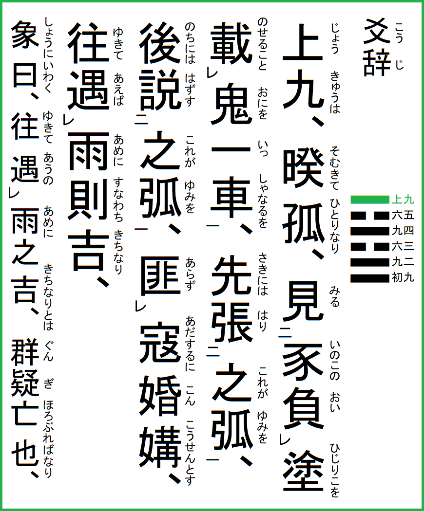 前の卦=37風火家人 次の卦=39水山蹇 38火沢睽 かたくけい