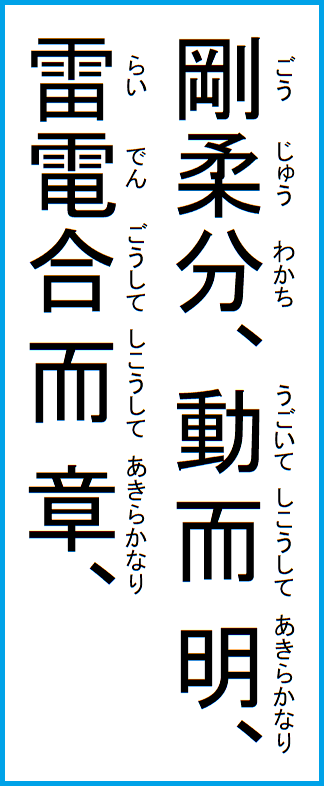 したがって、ニ爻から五爻までは、その頤中のこととして、噛み合せるという義を以って辞が付いていて、その噛むところの肉の剛柔堅軟にて、その爻の徳性象義を分別している。