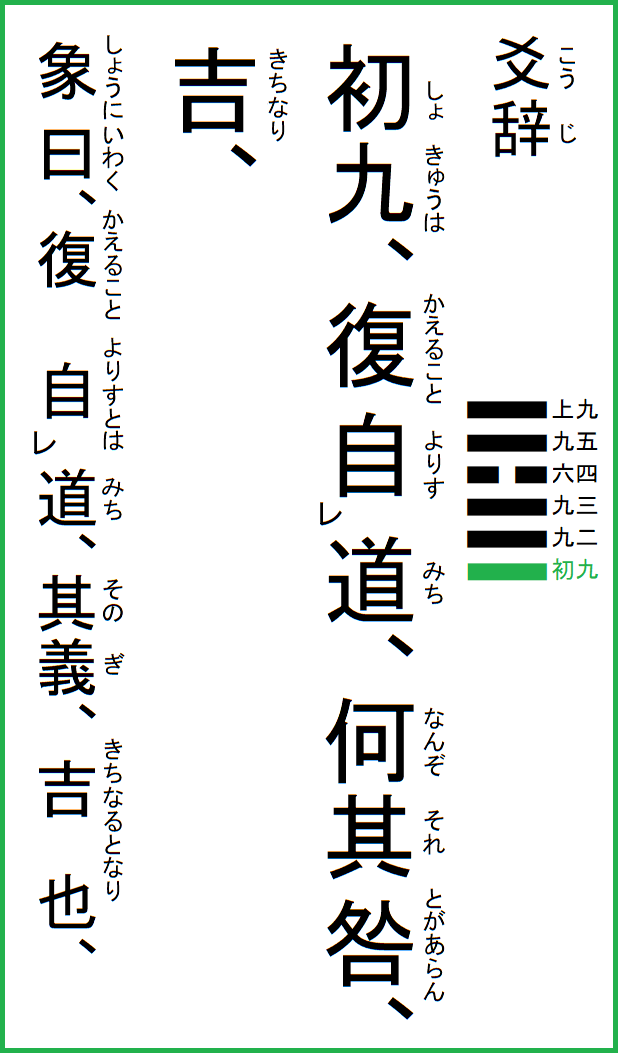 究極の易経解説 メニュー 01.乾為天 02.坤為地 03.水雷屯 04.山水蒙 05.水天需 06.天水訟 07.地水師 08.水地比 09.風天小畜 10.天沢履 11.地天泰 12.天地否 13.天火同人 14.火天大有 15.地山謙 16.雷地予 17.沢雷随 18.山風蠱 19.地沢臨 20.風地観 21.火雷噬嗑 22.山火賁 23.山地剥 24.地雷復 25.天雷无妄 26.山天大畜 27.山雷頤 28.沢風大過 29.坎為水 30.離為火 31.沢山咸 32.雷風恒 33.天山遯 34.雷天大壮 35.火地晋 36.地火明夷 37.風火家人 38.火沢睽 39.水山蹇 40.雷水解 41.山沢損 42.風雷益 43.沢天夬 44.天風姤 45.沢地萃 46.地風升 47.沢水困 48.水風井 49.沢火革 50.火風鼎 51.震為雷 52.艮為山 53.風山漸 54.雷沢帰妹 55.雷火豊 56.火山旅 57.巽為風 58.兌為沢 59.風水渙 60.水沢節 61.風沢中孚 62.雷山小過 63.水火既済 64.火水未済 |