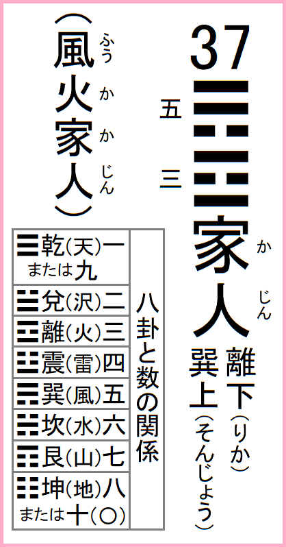 前の卦=36地火明夷 次の卦=38火沢睽 37風火家人 ふうかかじん八卦の