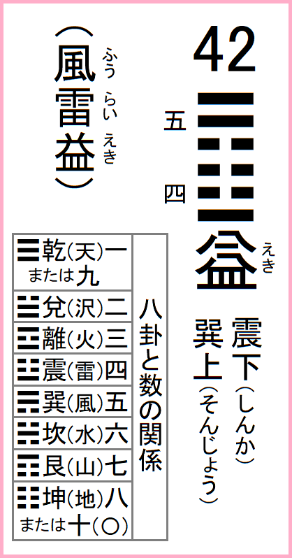 前の卦=41山沢損 次の卦=43沢天夬 42風雷益 ふうらいえき八卦の
