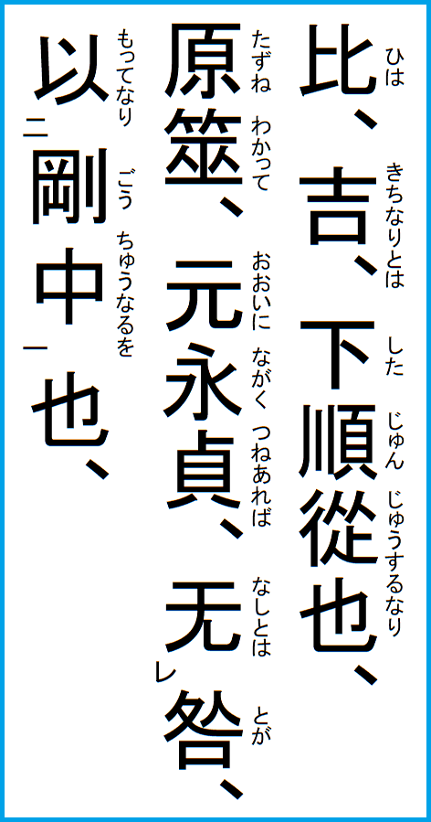 しかも今は、親しく比しむべきときなのだから、臣が君に正しく応じ和し親しむのであれば、何の悪いことはなく、むしろその当然の道を失わないことである。