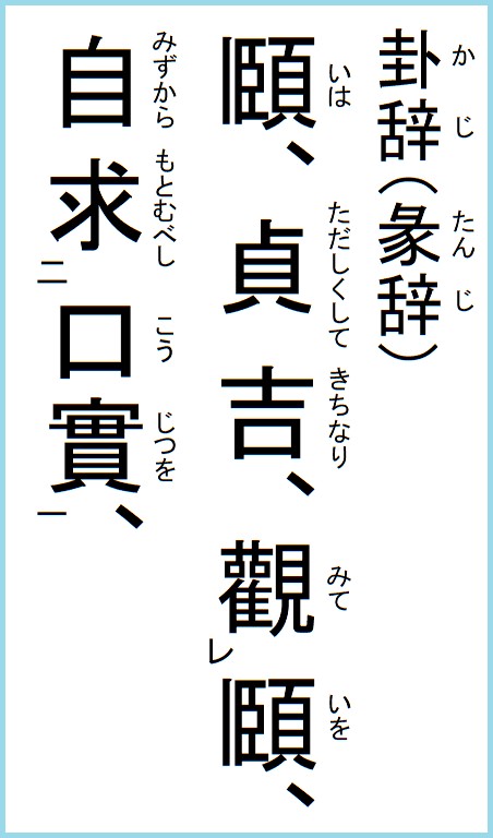 象に曰く、我を観て頤を朶るとは、亦、貴ぶに足らざるなり、