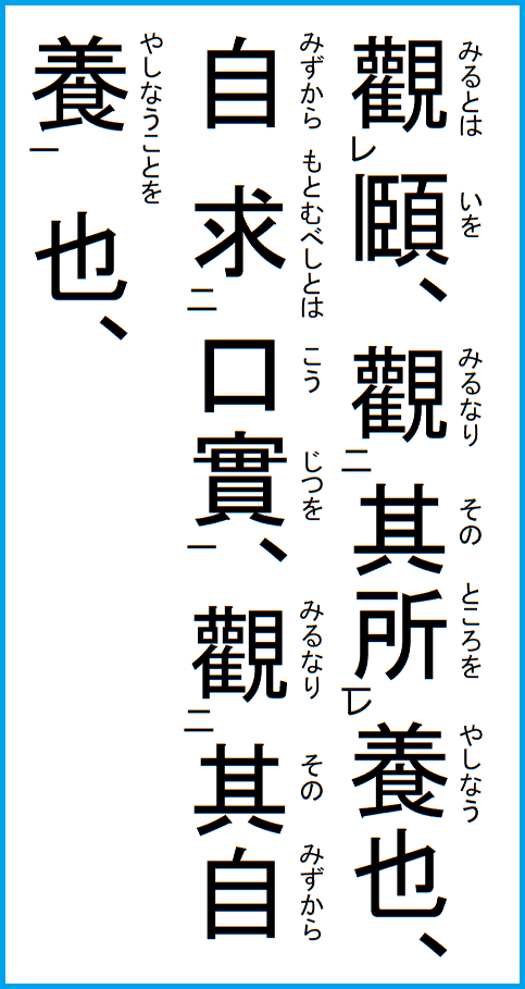 その上で、虎が眈々として物を視るように、近くを視る如くでありながらその志は遠くに在るという大度の器量を弘大にし、その養うところは逐逐として篤実重厚にする。