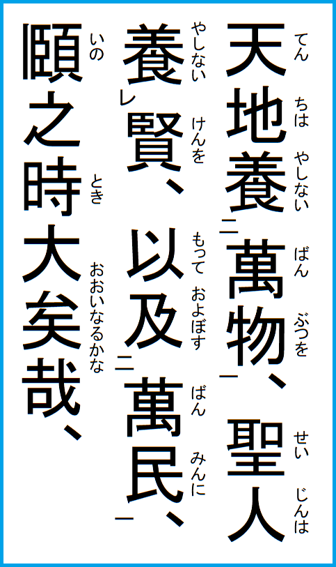 ことさらこれを天子と称するのは、天を父として仰ぎ戴き、その天の父の道に遵い則り、下は万民を子として撫育教化するという義があるからである。