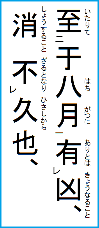 象に曰く、甘んじて臨むとは、位当たらざればなり、既に之を憂えばとは、咎として長ぜしめざれよとなり、