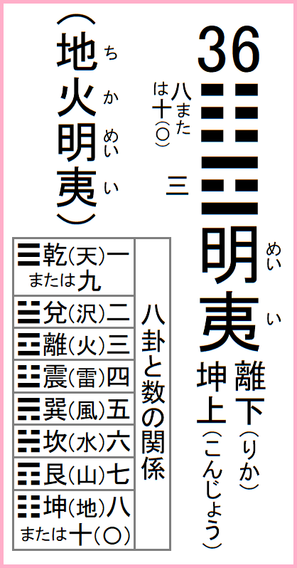 前の卦=35火地晋 次の卦=37風火家人 36地火明夷 ちかめいい八卦の