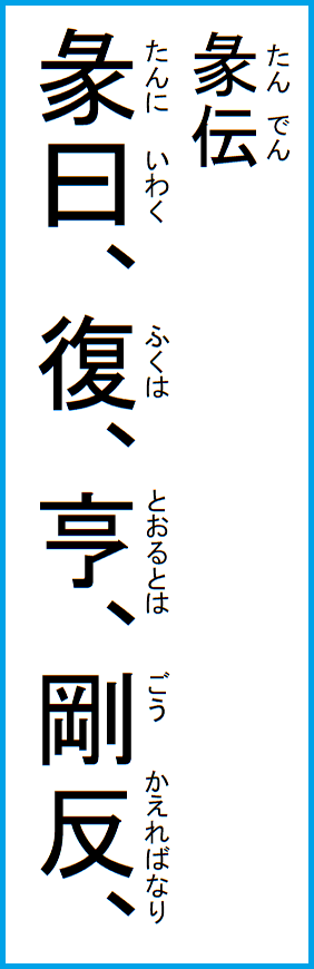 ここに書いているのは、江戸後期の名著、眞勢中州の『周易釈故』より抜粋し、現代語で意訳したものです。 |