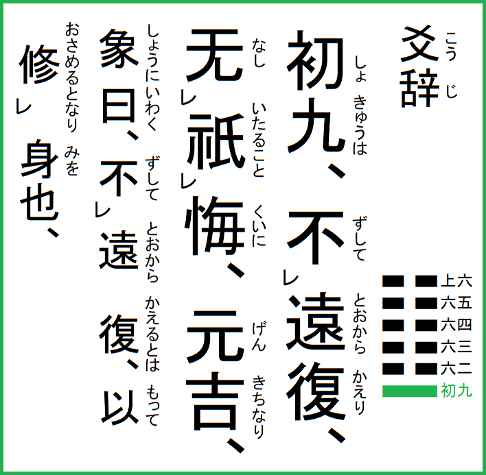 究極の易経解説 メニュー 01.乾為天 02.坤為地 03.水雷屯 04.山水蒙 05.水天需 06.天水訟 07.地水師 08.水地比 09.風天小畜 10.天沢履 11.地天泰 12.天地否 13.天火同人 14.火天大有 15.地山謙 16.雷地予 17.沢雷随 18.山風蠱 19.地沢臨 20.風地観 21.火雷噬嗑 22.山火賁 23.山地剥 24.地雷復 25.天雷无妄 26.山天大畜 27.山雷頤 28.沢風大過 29.坎為水 30.離為火 31.沢山咸 32.雷風恒 33.天山遯 34.雷天大壮 35.火地晋 36.地火明夷 37.風火家人 38.火沢睽 39.水山蹇 40.雷水解 41.山沢損 42.風雷益 43.沢天夬 44.天風姤 45.沢地萃 46.地風升 47.沢水困 48.水風井 49.沢火革 50.火風鼎 51.震為雷 52.艮為山 53.風山漸 54.雷沢帰妹 55.雷火豊 56.火山旅 57.巽為風 58.兌為沢 59.風水渙 60.水沢節 61.風沢中孚 62.雷山小過 63.水火既済 64.火水未済 |