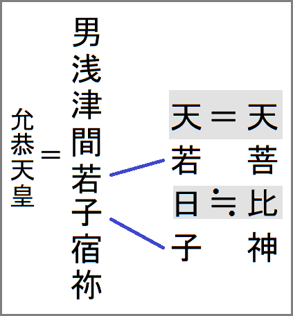 しかし若子の二字は、20允恭天皇の国風諡号の男浅津間若子宿祢の中にある字である。