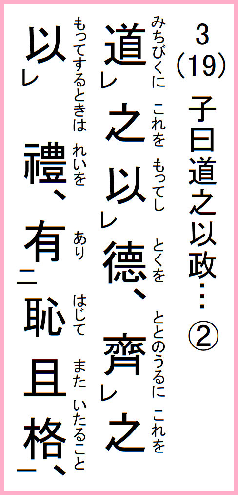 之を道びくに徳を以ってし、之を斉うるに礼を以ってするときは、恥じて且格ること有り、