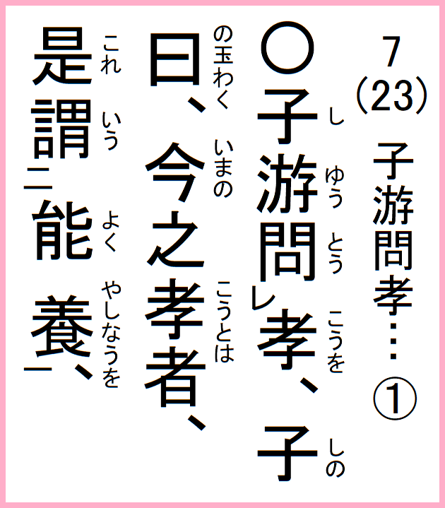 2-7 子游孝を問う、子の曰く、今の孝とは、これ能…、