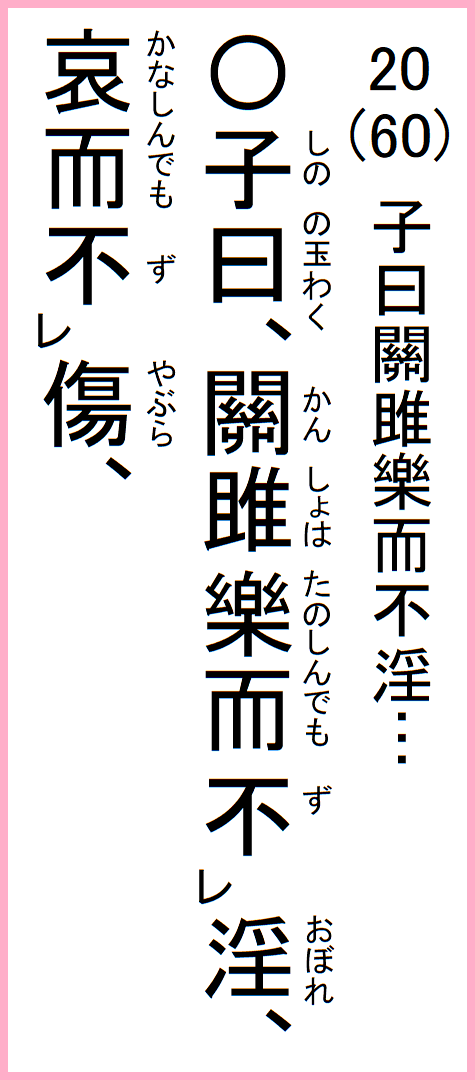 3-20 子の曰く、関雎は楽しんでも淫れず、哀んでも…、
