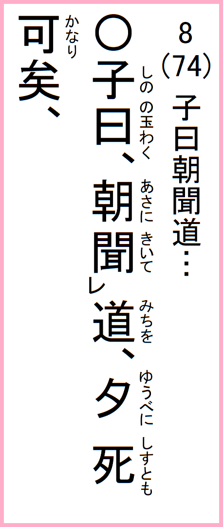 4-8 子の曰く、朝に道を聞いて、夕べに死すとも可なり、