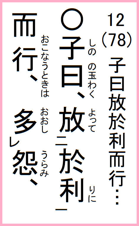 4-12 子の曰く、利に放って行うときは、怨み多し、