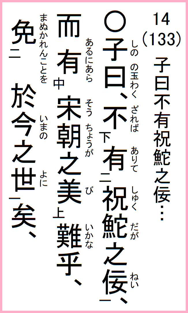 6-14 子の曰く、祝鮀が佞、有りて、宋朝が美有るに…、