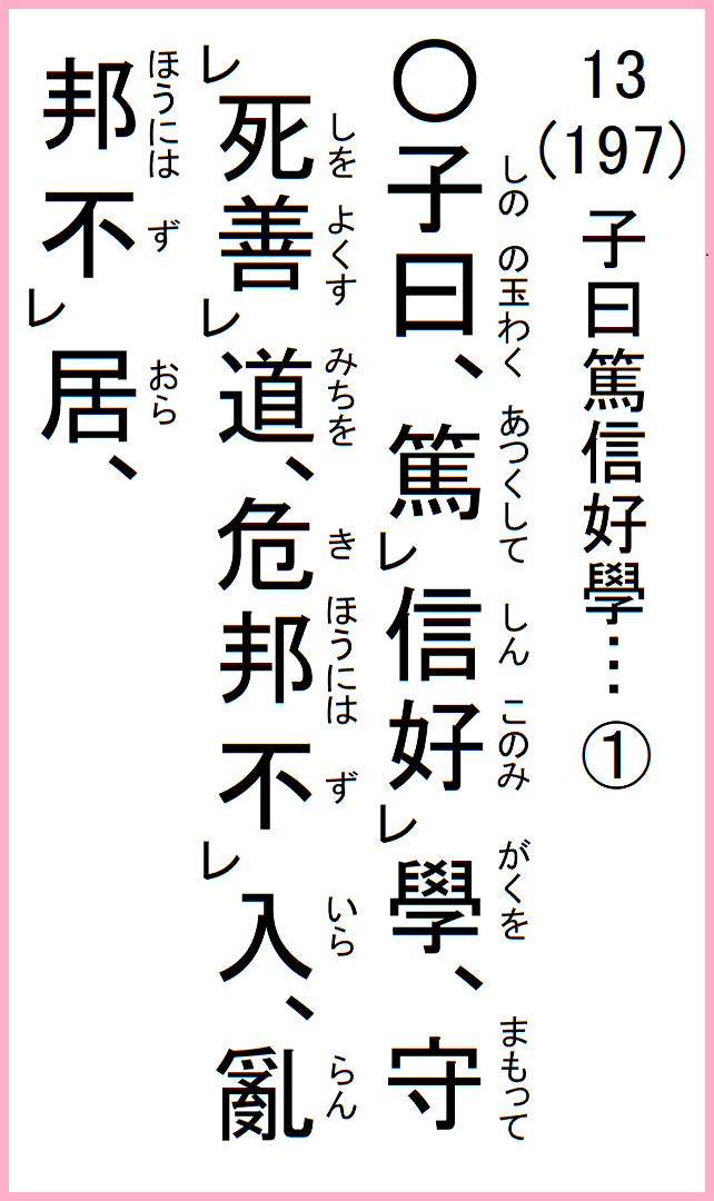 8-13 子の曰く、信に篤くして学を好み、死を守って…、