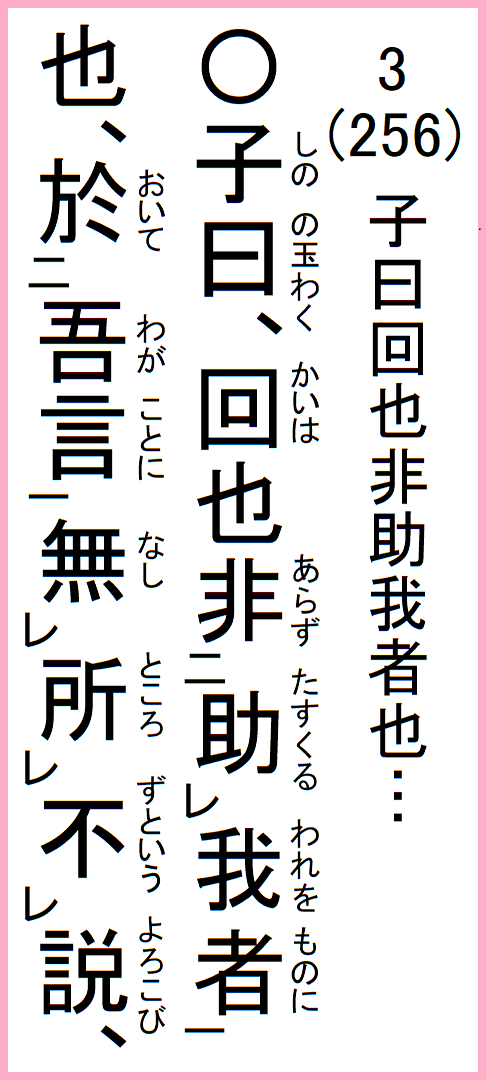 11-3 子の曰く、回は我を助くる者に非ず、吾が言に於…、