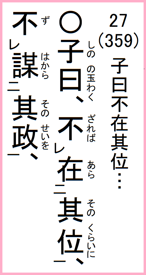14-27 子の曰く、其の位に在らざれば、其の政を謀らず、