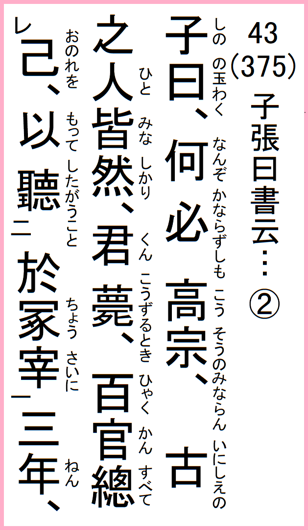 子張の曰く、書に云わく、高宗諒陰三年言わず、何と謂うことぞ、
