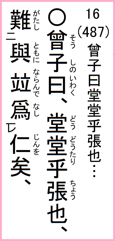 曽子の曰く、堂々たり張、与に並んで仁を為し難し、