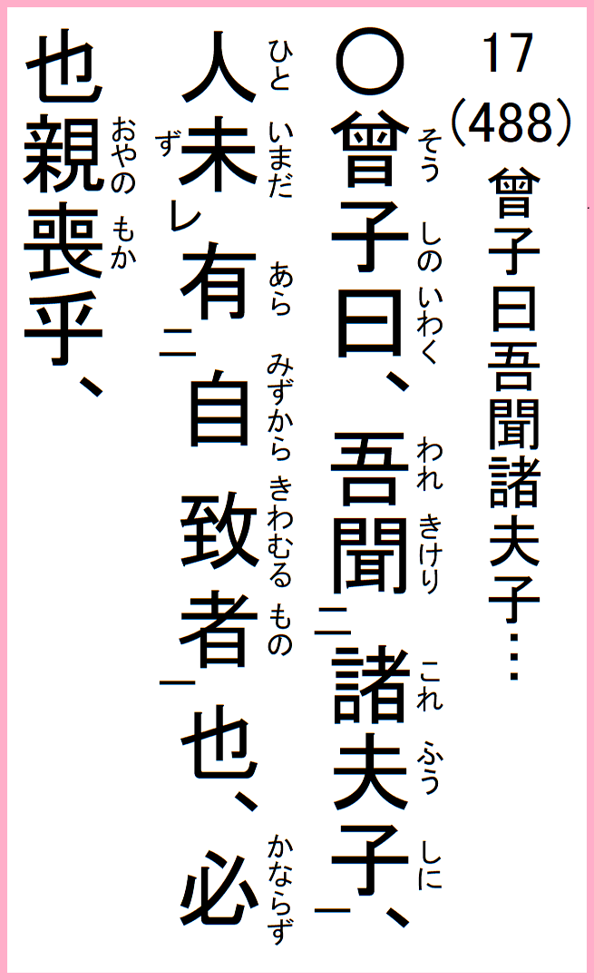 19-17 曽子の曰く、吾れ諸れ夫子に聞けり、人、未だ…、