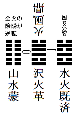 なお、裏返すとは陰陽を逆転させることで、算木が陽⚊の裏は陰⚋、陰⚋の裏は陽⚊となるように作られているから、こう言うのである。