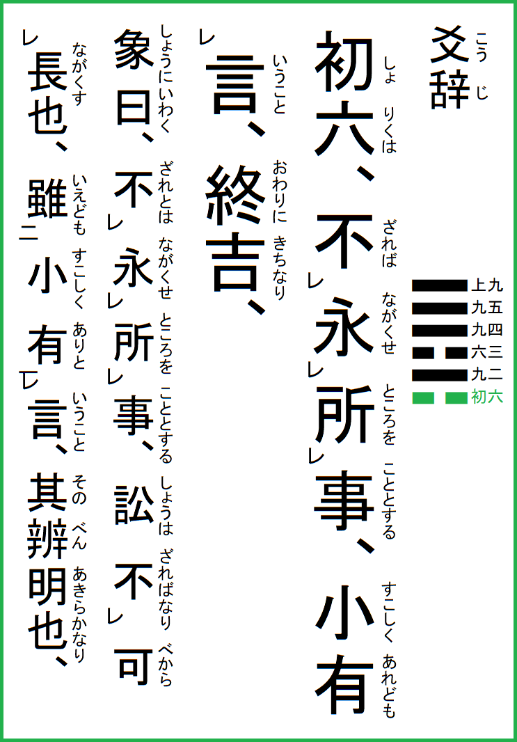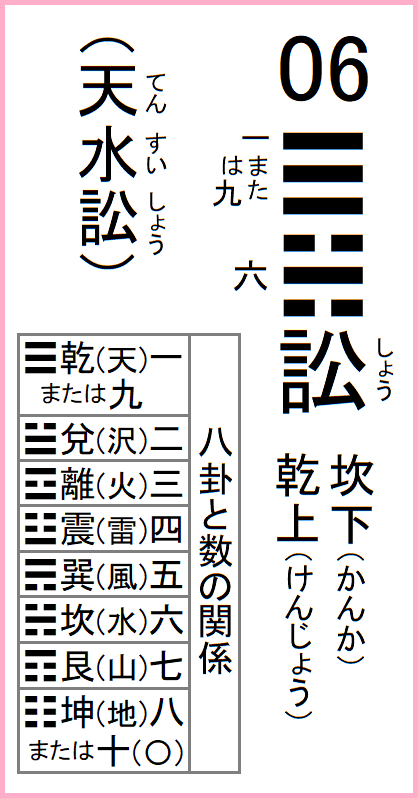前の卦=05水天需 次の卦=07地水師 06天水訟 てんすいしょう3安寧天皇のA列。詳細はコチラ。 八卦の