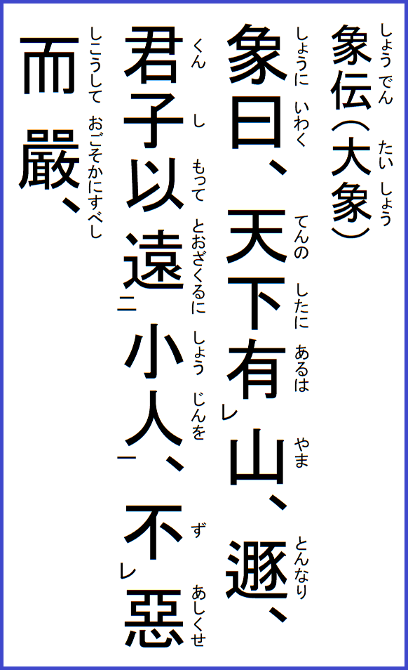 ここに書いているのは、江戸後期の名著、眞勢中州の『周易釈故』より抜粋し、現代語で意訳したものです。 |