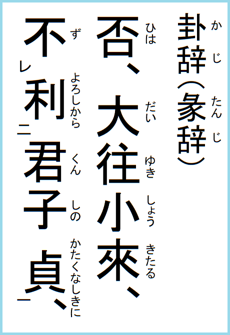 象に曰く、否終われば、則ち傾く、何ぞ長かる可きなり、