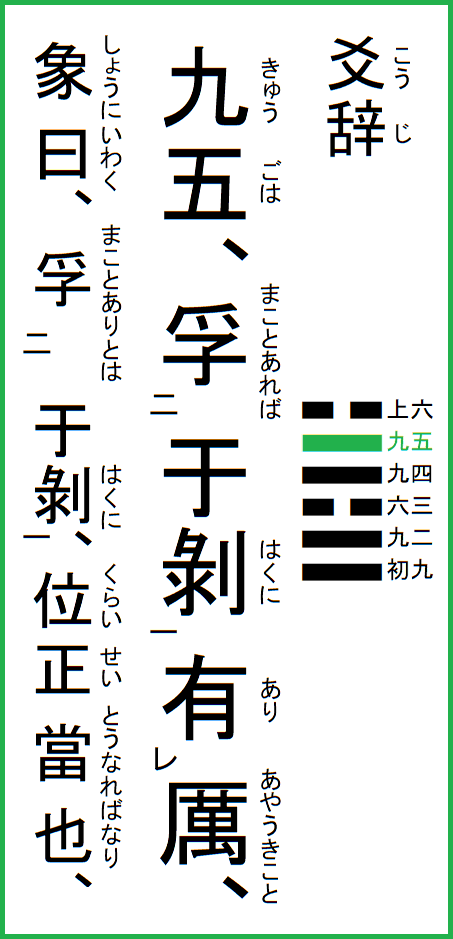ここに書いているのは、江戸後期の名著、眞勢中州の『周易釈故』より抜粋し、現代語で意訳したものです。 |