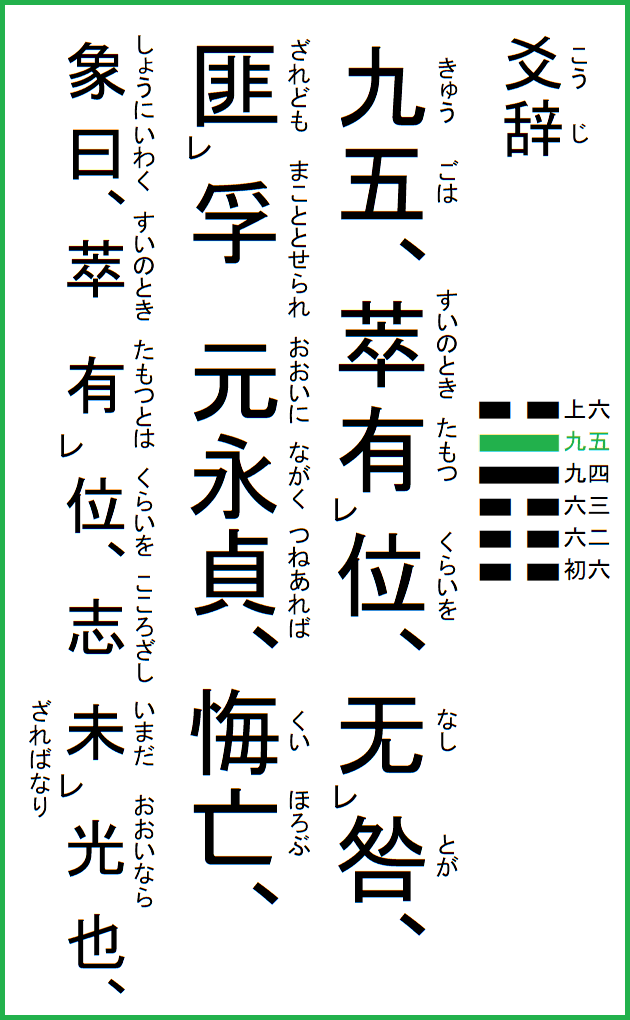 ここに書いているのは、江戸後期の名著、眞勢中州の『周易釈故』より抜粋し、現代語で意訳したものです。 |