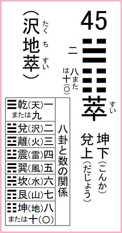 前の卦=44天風姤 次の卦=46地風升 45沢地萃 たくちすい八卦の