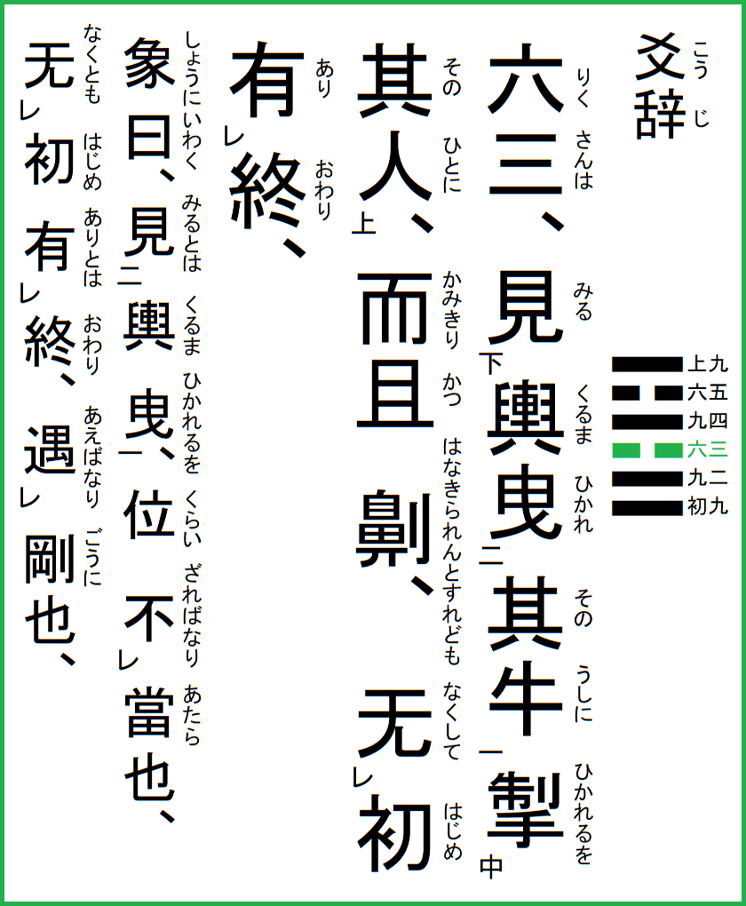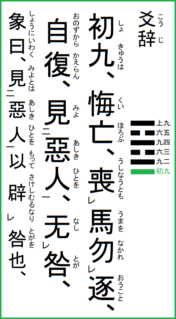 ここに書いているのは、江戸後期の名著、眞勢中州の『周易釈故』より抜粋し、現代語で意訳したものです。 |