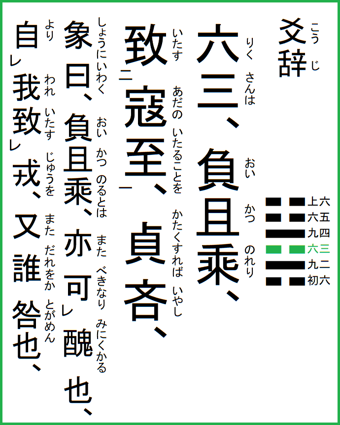 ここに書いているのは、江戸後期の名著、眞勢中州の『周易釈故』より抜粋し、現代語で意訳したものです。 |