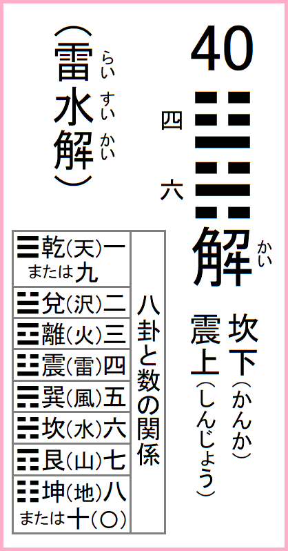 前の卦=39水山蹇 次の卦=41山沢損 40雷水解 らいすいかい八卦の